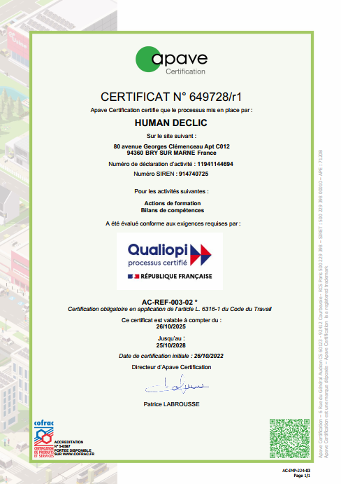 Déclaration d’activité enregistrée sous le n° 11941144694 auprès du préfet de région d’Ile de France.